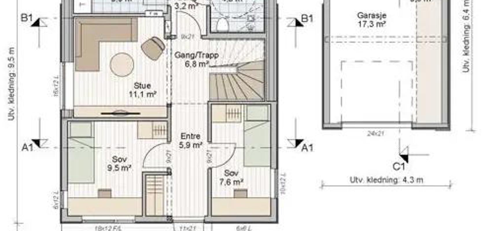 Planløsningen har også gode lagringsmuligheter og egen bi inngang med vaskerom.