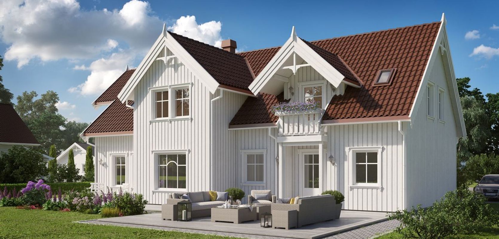 Her har du fire soverom, et gjesterom, stort kjøkken og en vinkelstue, to bad og eget vaskerom, samt en romslig loftstue. Du kan til og med velge å ha flere peiser i huset hvis du ønsker det.