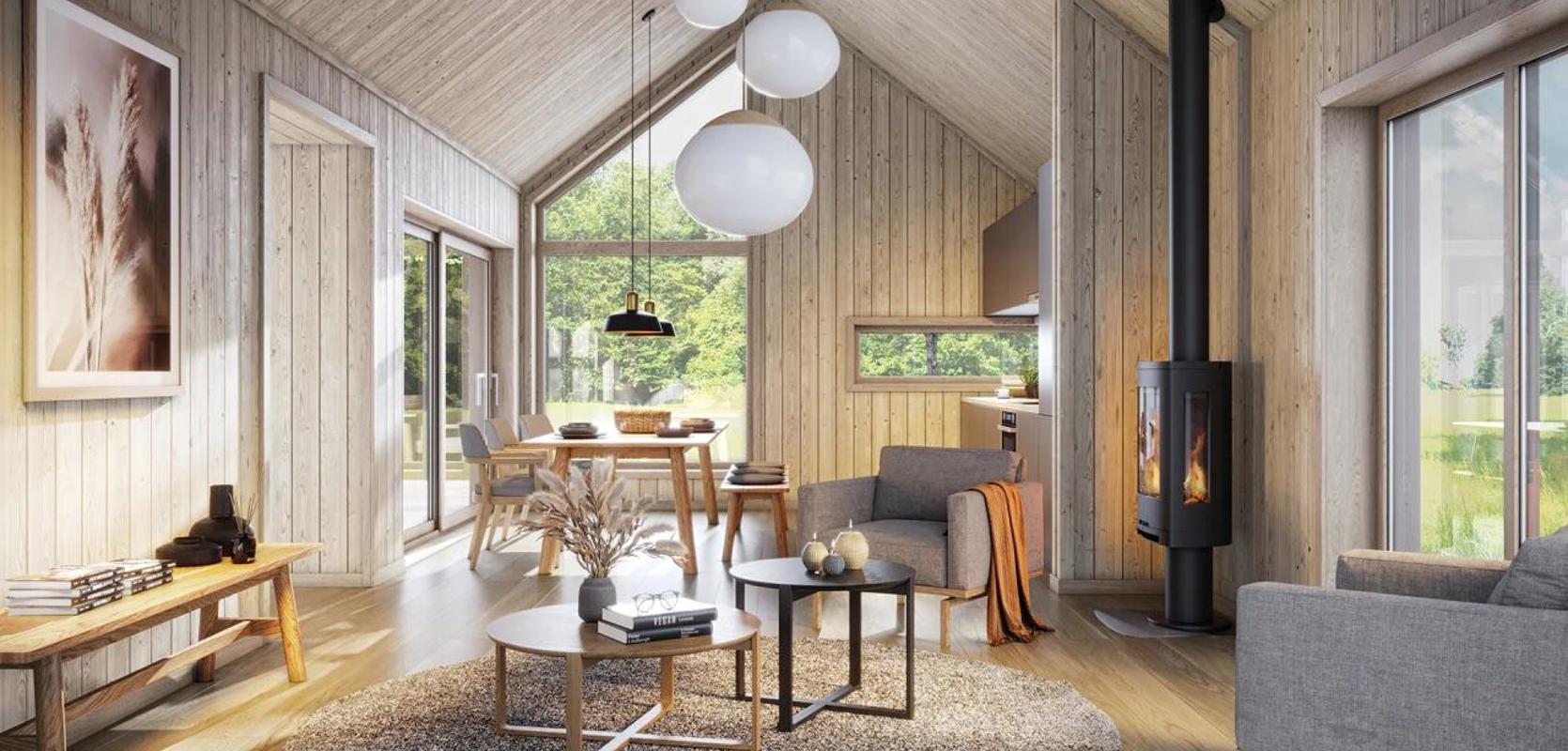 Ildsted som sentralt punkt: Ildstedet er synlig fra mellomgangen, allrommet og uteplassen, noe som gir en følelse av samhørighet mellom disse områdene. Ildsteder er ikke bare praktiske varmekilder, men også estetisk tiltalende elementer som tilfører atmosfære og koselig stemning til rommet.