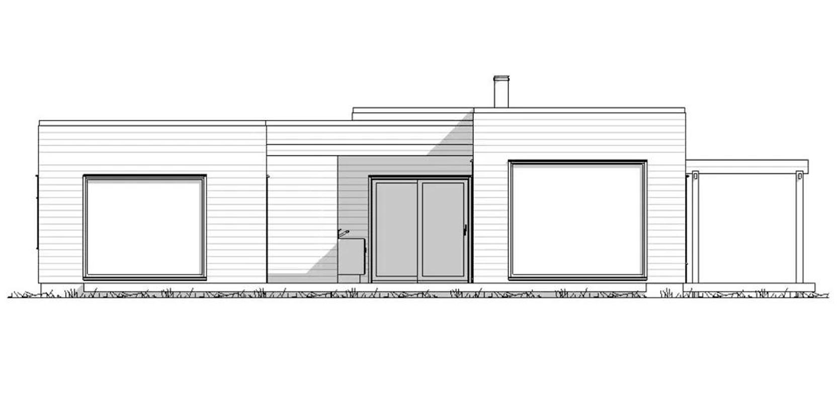 Risør hytta har et solid overbygd inngangsparti som gir tilgang til både en utebod og hovedinngangen. Uteboden er fullt isolert og har en bred døråpning, som gir enkel tilgang til utstyr som ski, pulker, sykler, og mer. Ved siden av hoveddøren er det lysfelt for gjennomgående gløtt inn og ut mot atrium og uteplassen på andre siden av hytta.